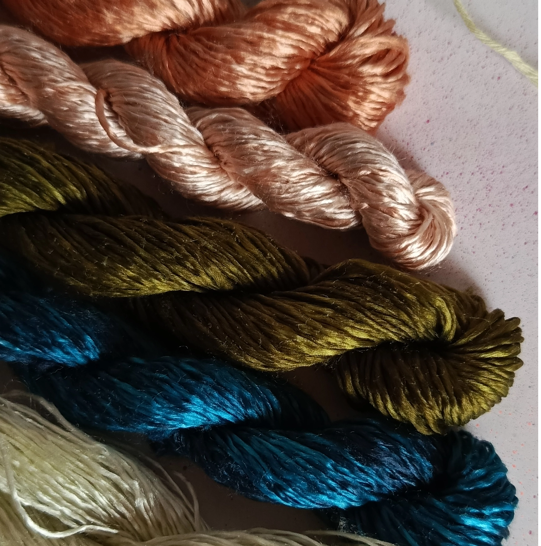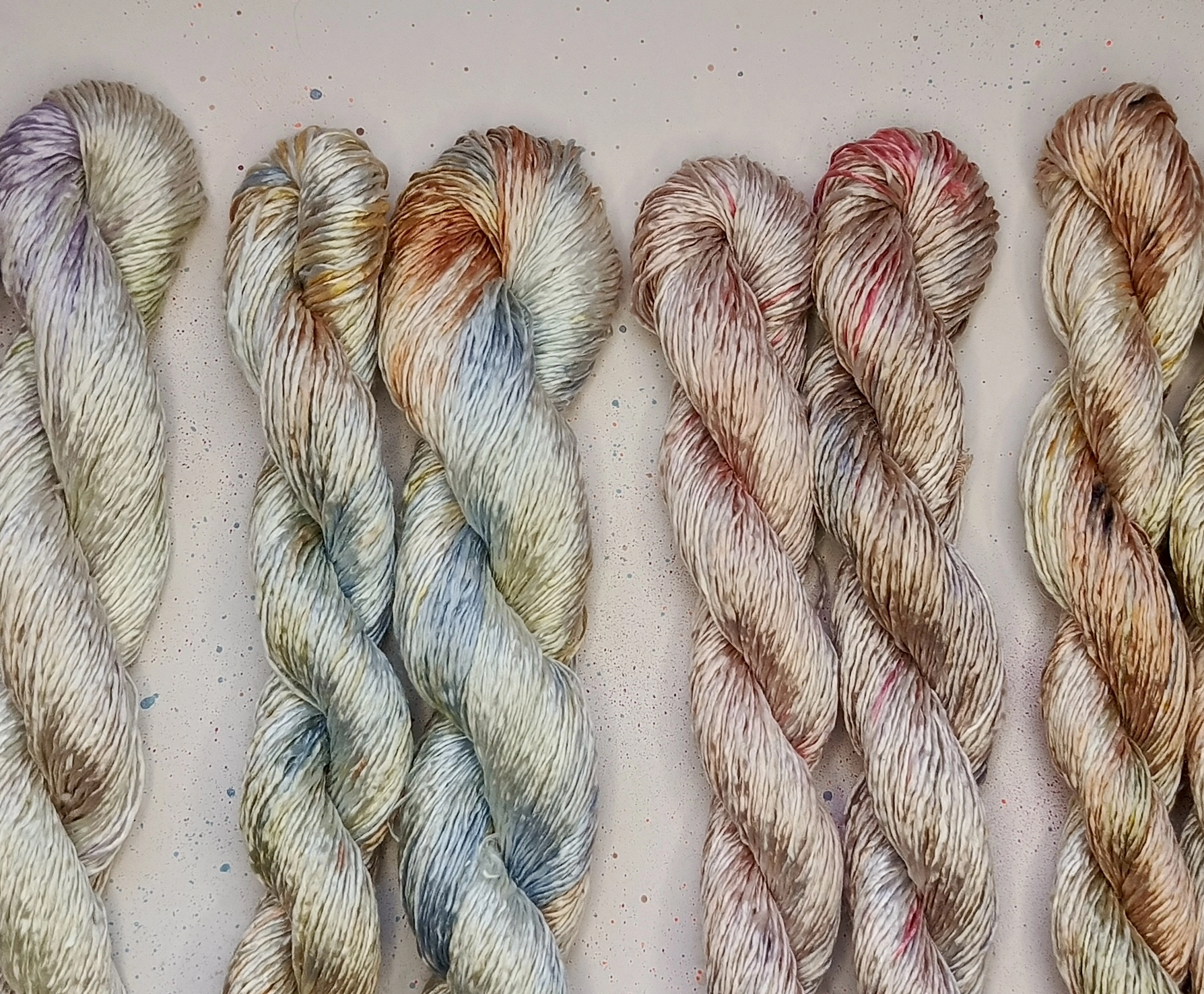 Hilos de seda 100% natural colombiana, con brillo y suavidad únicos. Perfectos para tejidos elegantes y sofisticados con un acabado delicado y resistente.